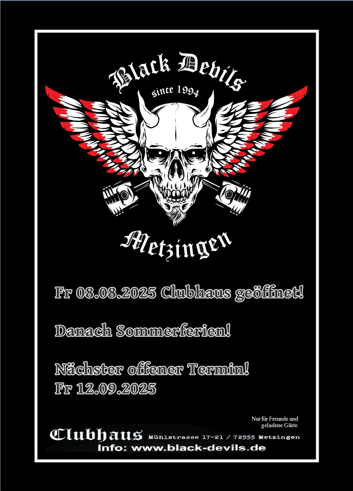Fr.08.08.2025 Clubhaus Geöffnet !