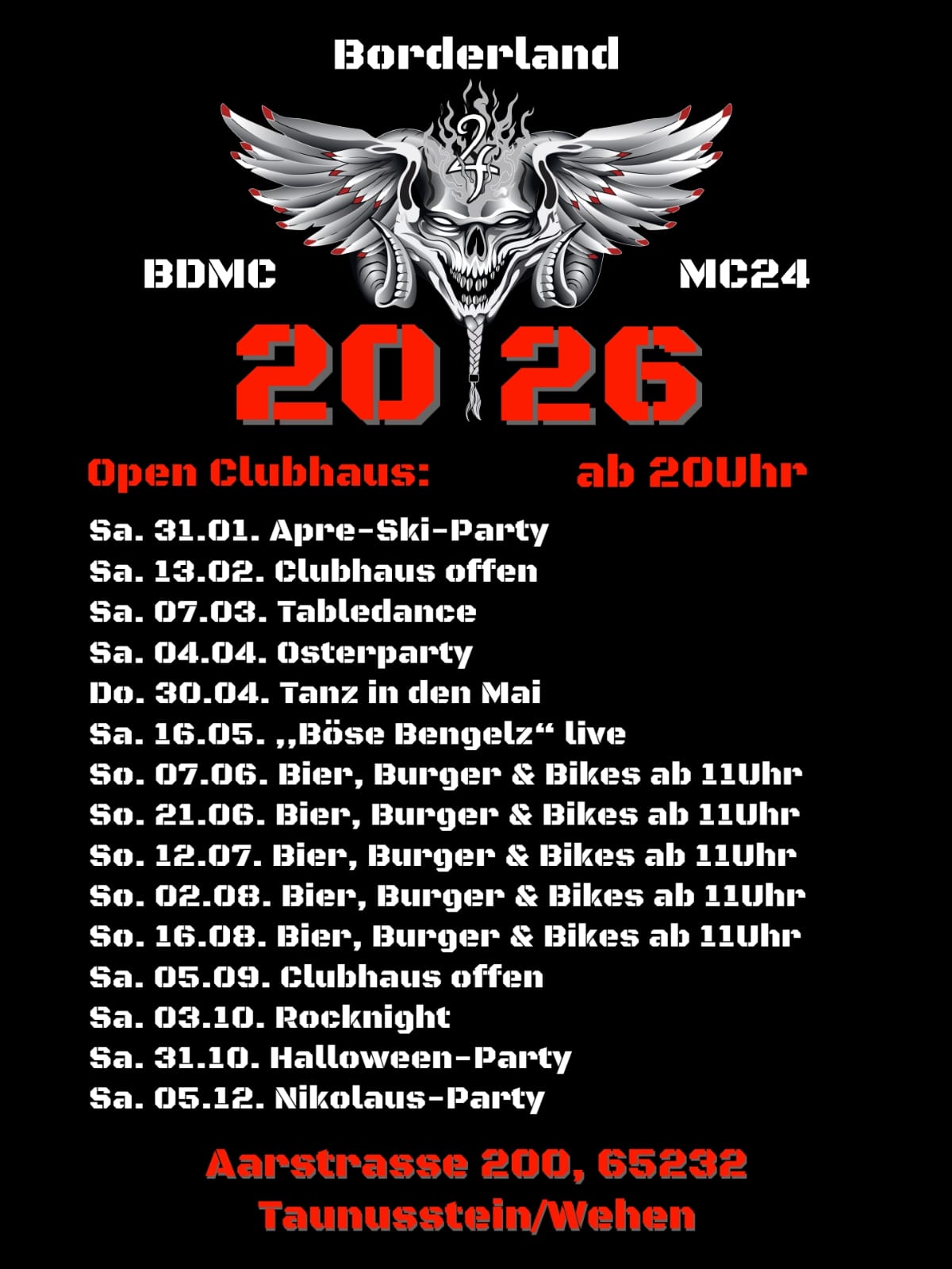 Sa. 13.02. Clubhaus offen